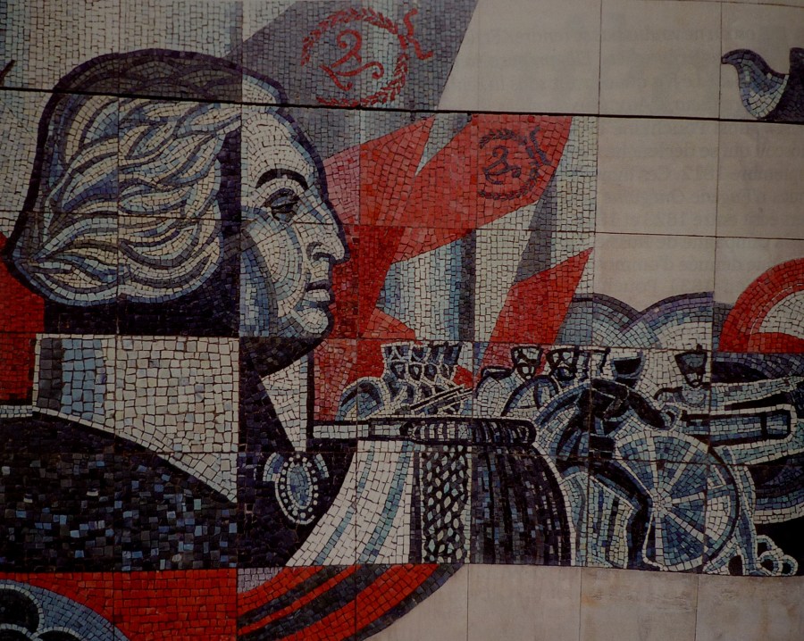 Koutouzov, version 1962. Détail de la mosaïque ornant le musée-panorama de Borodino, élevé à Moscou pour la commémoration des 150 ans de la bataille. Ce monument circulaire a été édifié à l’endroit où se trouvait l’isba de Fili, là où Koutouzov décida de ne pas défendre Moscou.