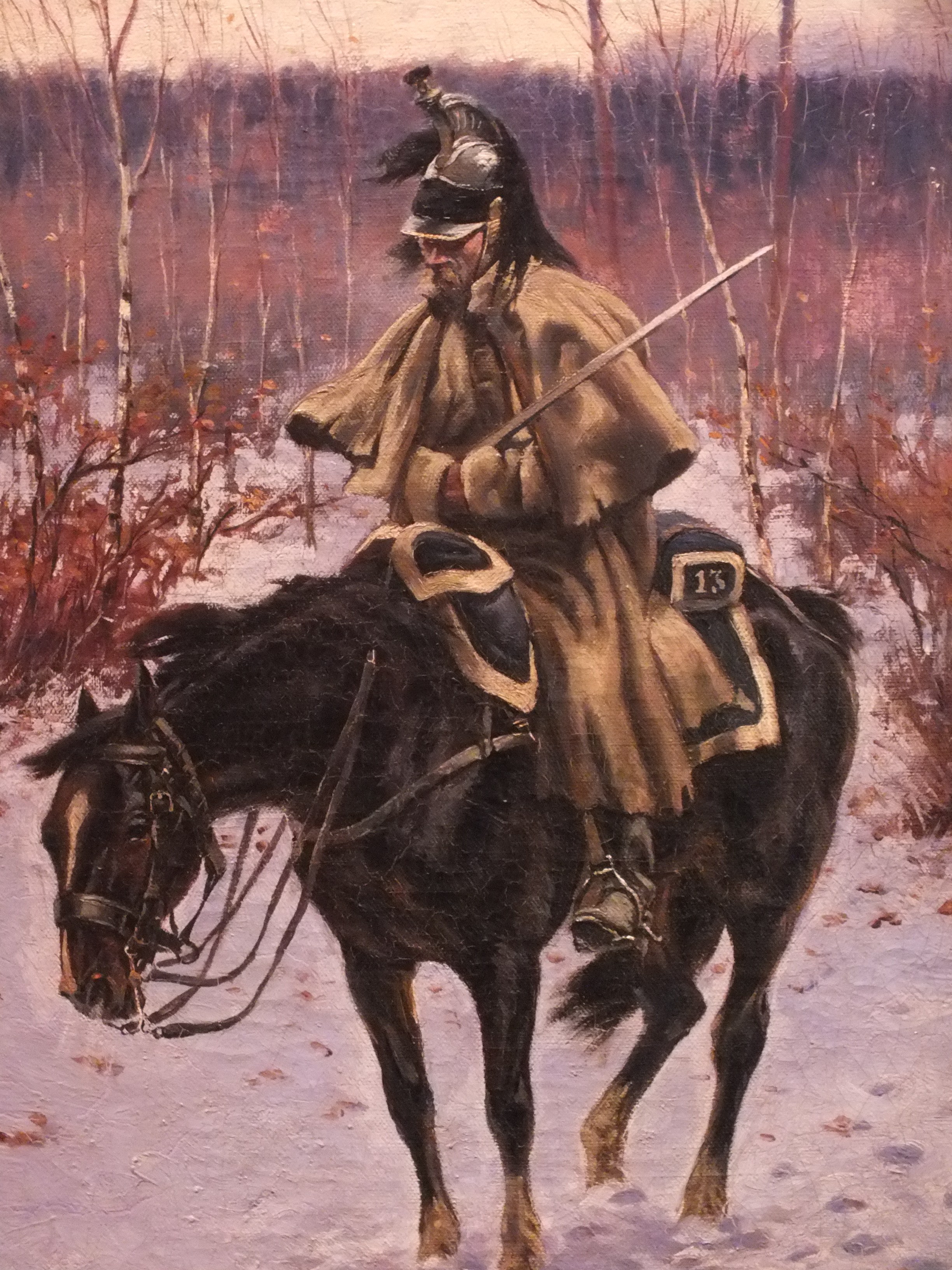 Source : « La retraite du dragonnier », K. Pulatsky, huile sur toile, 1899, Musée de la Guerre Patriotique de 1812, Moscou.